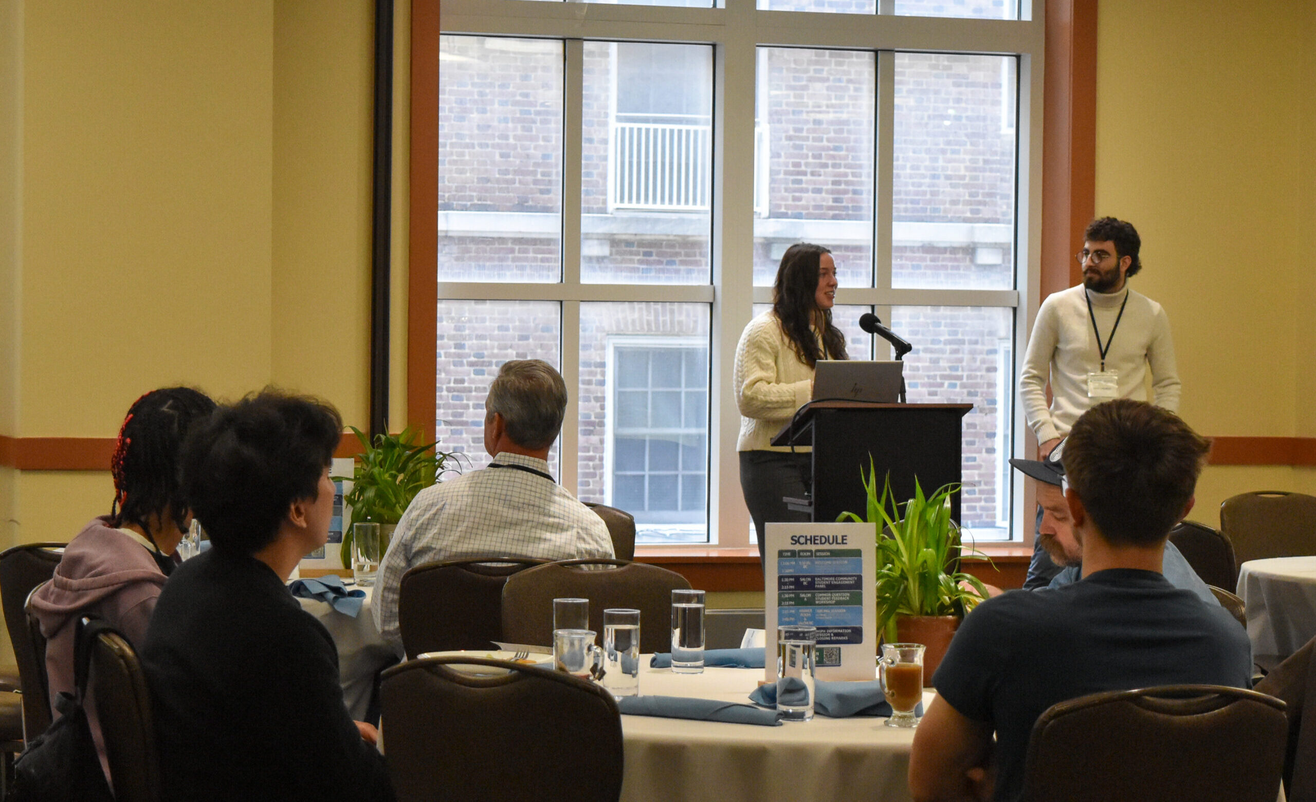 JHU Office of Climate and Sustainability (OCS) Director, Julian Goresko, spoke next, orienting attendees to the school’s vision and strategy for advancing healthy, just, and sustainable environments at JHU and around the world.